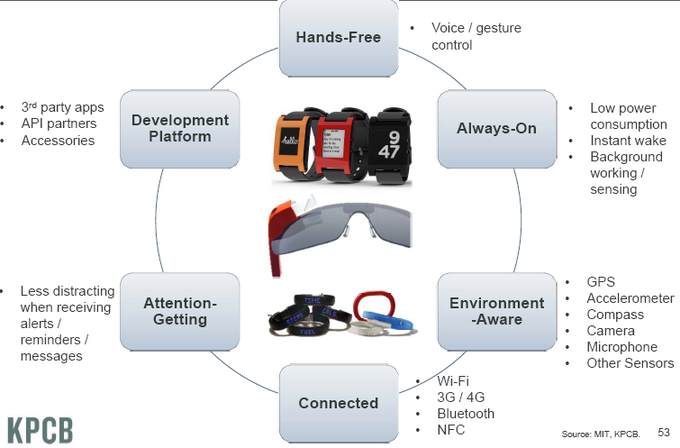 可穿戴设备的特点是解放双手、永远运行、感知环境、全网连接、引人注意以及有开发平台支持。