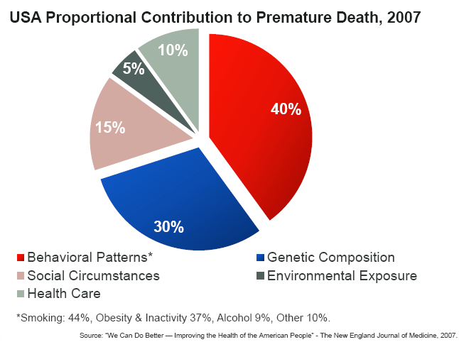 Meeker单独用一张片子说明了行为模式对早逝的影响:美国40%的早逝是因为吸烟、酗酒等不良行为模式导致的,占比最大,超过了遗传(30%)。而量化自我可以改善人的行为模式。