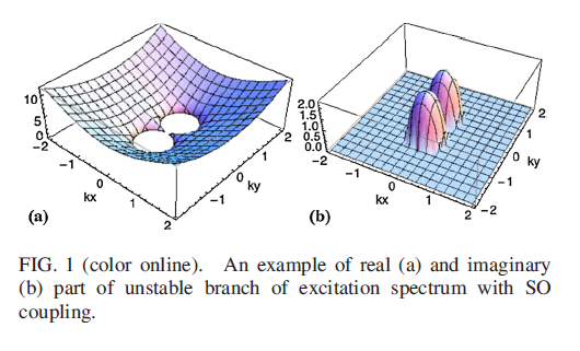 在冷原子系统中,一种等效的自旋轨道耦合作用可以通过控制原子-激光之间的相互作用产生出来。这里我们研究了自旋1/2和自旋1的带有Rashba自旋轨道相互作用的波色-爱因斯坦凝聚,发现凝聚波函数有不平凡的结构。首先,我们用Bogoliubov变换的方法证明在自旋轨道耦合作用下,传统的凝聚在 态的波函数不稳定。之后用数值模拟的方法,我们发现了基态的两个相。在一个相中,系统基态是平面波,而且系统经常分裂为不同的畴,畴壁是一排涡旋;这个相中,时间反演对称性破缺。在另一个相中,凝聚态波函数是驻波,且有自旋带结构。两个相之间的相变由波色子之间的相互作用强度决定。我们还提供了对这些结果的理论分析,得到相变点。