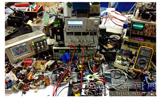 实验室的每个角落都堆满了发明半成品、成品,黑板上写满了方程式、论证原理,一笔一划无不闪耀着智慧的光芒。一项科技作品的研发从来都不是一蹴而就的,论证再严密的理论在应用和实践中也会遇上各种难题。团队成员杨光说,一个难题接着一个难题的出现并不是最困难和痛苦的事情,几十个难题一起出现才是巨大的挑战。这个时候大家就会不分昼夜的讨论解决办法。
