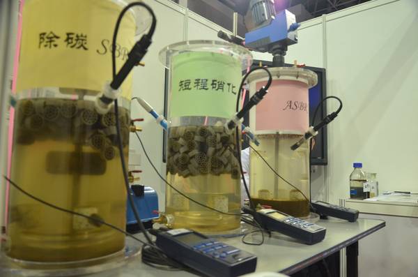 垃圾渗滤液含有大量氨氮,会带来严重水体富营养化,是我国水处理的重点和难点。而传统处理工艺存在诸多缺陷导致效率不高,开发新型高效的垃圾渗滤液处理工艺势在必行。本项目利用微生物界中的“红菌”——厌氧氨氧化菌能够高效得去除渗滤液中的总氮,同时能够大大减少污水处理的处理费用和基建费用。目前已有采用厌氧氨氧化技术进行污水脱氮处理的报道,然而“红菌”会受到许多不利因素的影响,如有机物、溶解氧的影响以及亚硝态氮和氨氮的比例不能很好地维持等问题。因此需要处理的工艺及装置能够为“红菌”提供良好的环境,以适用于垃圾渗滤液脱氮处理。本作品提供一种新工艺及技术,可以解决垃圾渗滤液深度脱氮难的问题。首次依托“红菌”技术,采用三级SBR系统,成功富集了适应渗滤液的“红菌”,将菌种分离的同时结合过程自动控制,为“红菌”提供了良好的“生存环境”。将三个SBR反应器有效耦合及优化控制,通过预处理去除有机物、短程硝化产生亚硝态氮以及最终的厌氧氨氧化反应,成功实现了对垃圾渗滤液的深度脱氮,达到了国家一级排放标准。 为了检测对晚期渗滤液深度脱氮的处理效果,试验研究采用三级SBR系统处理氨氮为2000±100mg/L、COD为2200±200mg/L的实际晚期垃圾渗滤液,以实现对渗滤液中氨氮污染物的去除。试验表明,总氮的去除率达到了90%以上,成功实现了对实际晚期垃圾渗滤液的深度脱氮。与现有技术相比,本发明提供的处理装置采用三级SBR系统,在不添加任何有机碳源的条件下,能够达到对垃圾渗滤液进行深度脱氮的目的,减少了对水体富营养化的影响。节约了40%的供氧费,且无需外加碳源,大大减少了污水处理的处理费用和基建费用。此外,三级SBR系统由于能够将菌种分离,为各个菌种提供相应的环境,并去除渗滤液中的有机物,以减少对“红菌”的毒害。同时,装置采用连续进水方式,为“红菌”提供了良好的生存环境(pH和温度均适宜)。 本作品已在小试实验中达到稳定运行并取得了良好的脱氮效果,并在建中试规模的处理晚期垃圾渗滤液“红菌”系统及成套的实时控制系统。新研发的“红菌”脱氮技术可减少曝气能耗和反硝化所需碳源,可以节约60%曝气量及100%有机碳源,同时减少了50%的污泥产量,相比传统硝化反硝化工艺,能够节省约8-10元/m3的处理成本。在全国垃圾渗滤液的处理上有着广阔的应用前景,目前本工艺概念已应用于湖北十堰垃圾渗滤液示范工程的处理。
