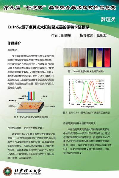 - CuInS2量子点荧光太阳能聚光器的蒙特卡罗模拟