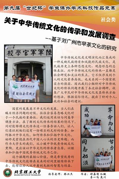 - 关于中华传统文化的传承和发展调查\"--基于对广州市早茶文化的研究\"